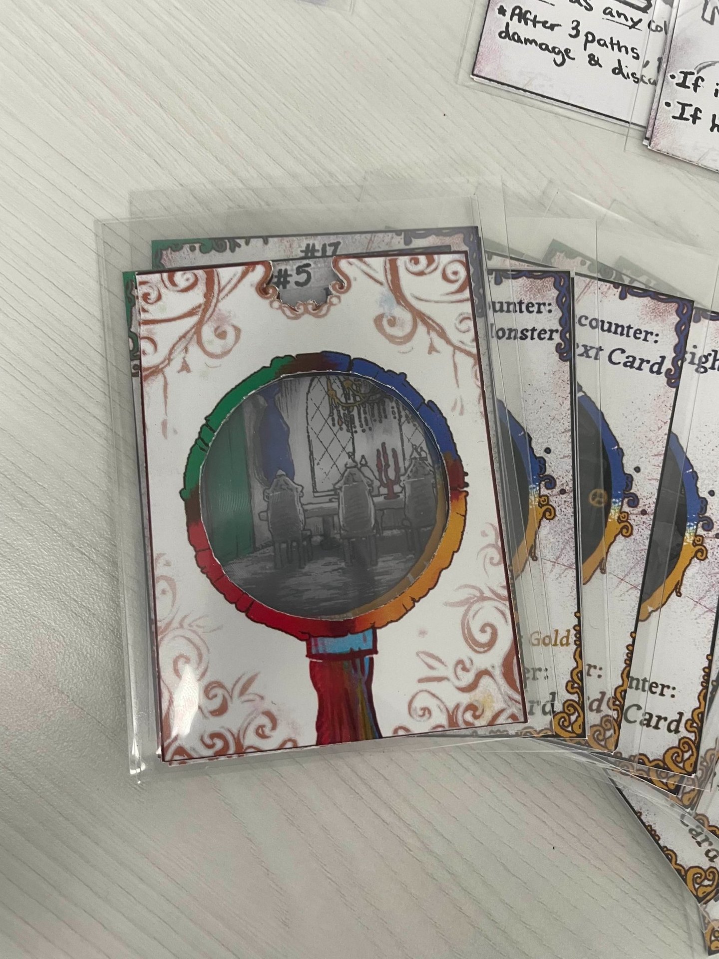 A singleplayer choose-your-own-adventure wallet card game designed for replayability. I was responsible for concepting and prototyping, as well as systems balance.